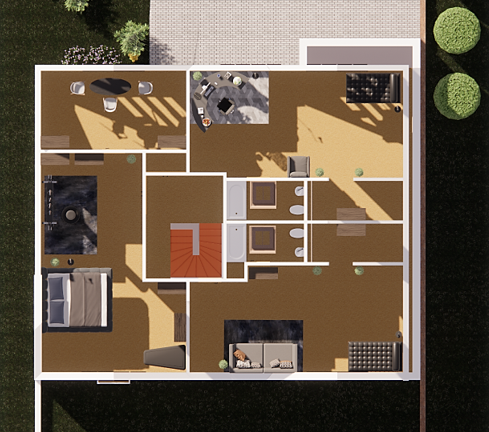 A basic 2D Interior Design, with colour and components included. The option for measurements and room labels can also be applied.
