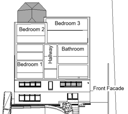 An intermediate 3D Floor Plan built from the 2D Floor Plan provided to the client. The client wanted basic colour for distinction between rooms, but did not want to spend too much on aesthetics.