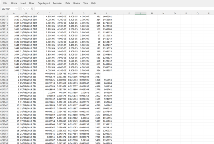 Excel Spreadsheet containing >600,000 rows of data, from 2008-2020